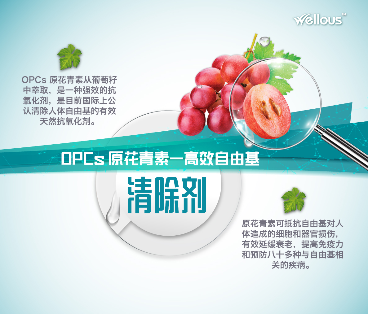 OPCs是众多抗氧化剂中不错的选择。它是一种抗氧化剂,其清除自由基的能力是维生素C的20倍,维生素E的50倍。除此之外,OPCs能够穿过血脑屏障来保护细胞免受自由基损伤。