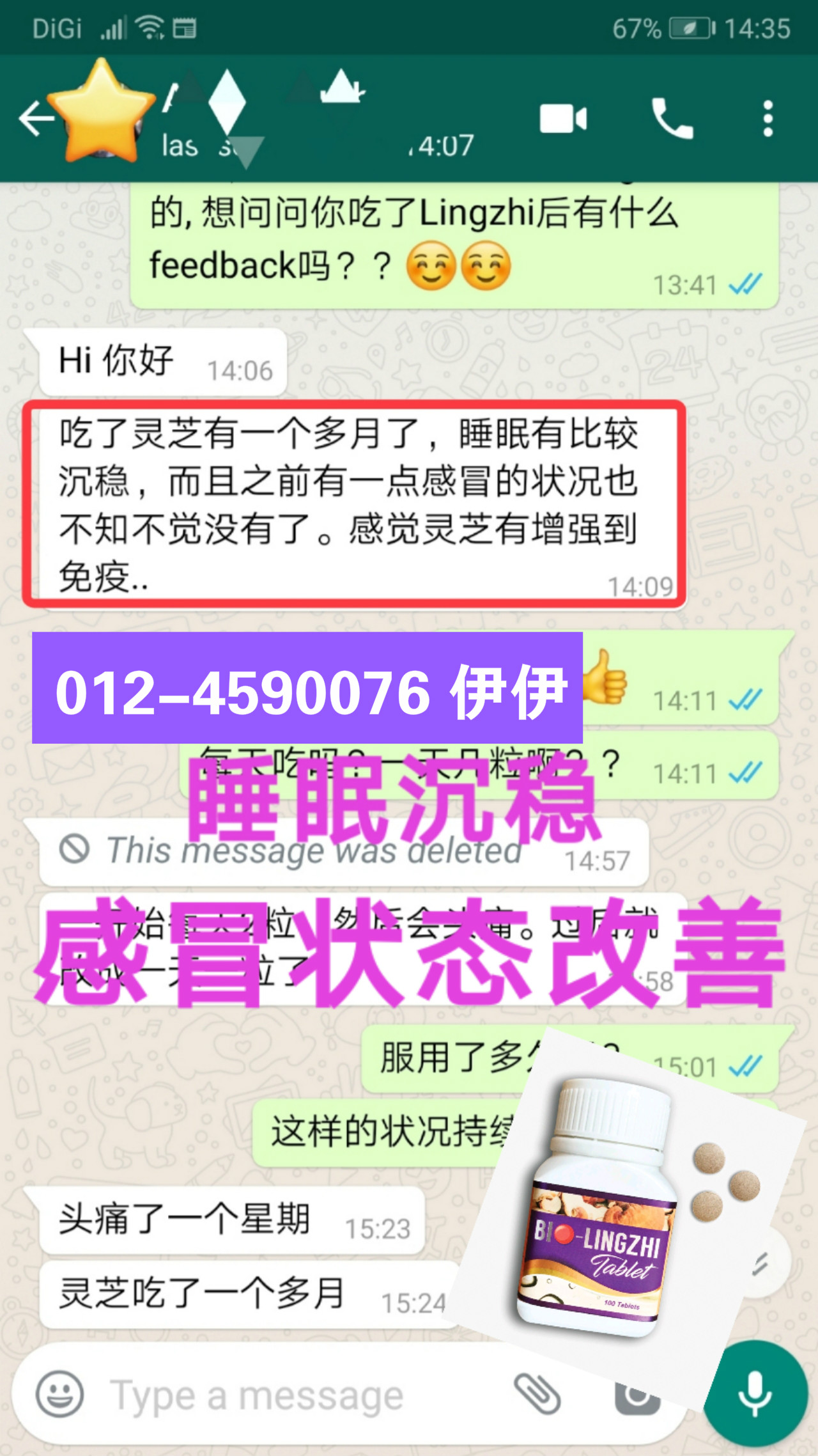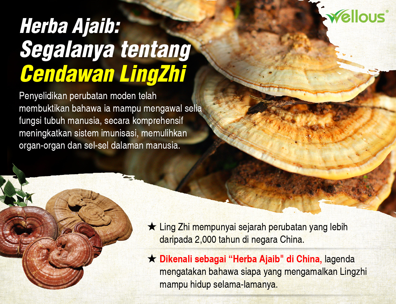 setiap tablet mengandungi 250mg cendawan LingZhi