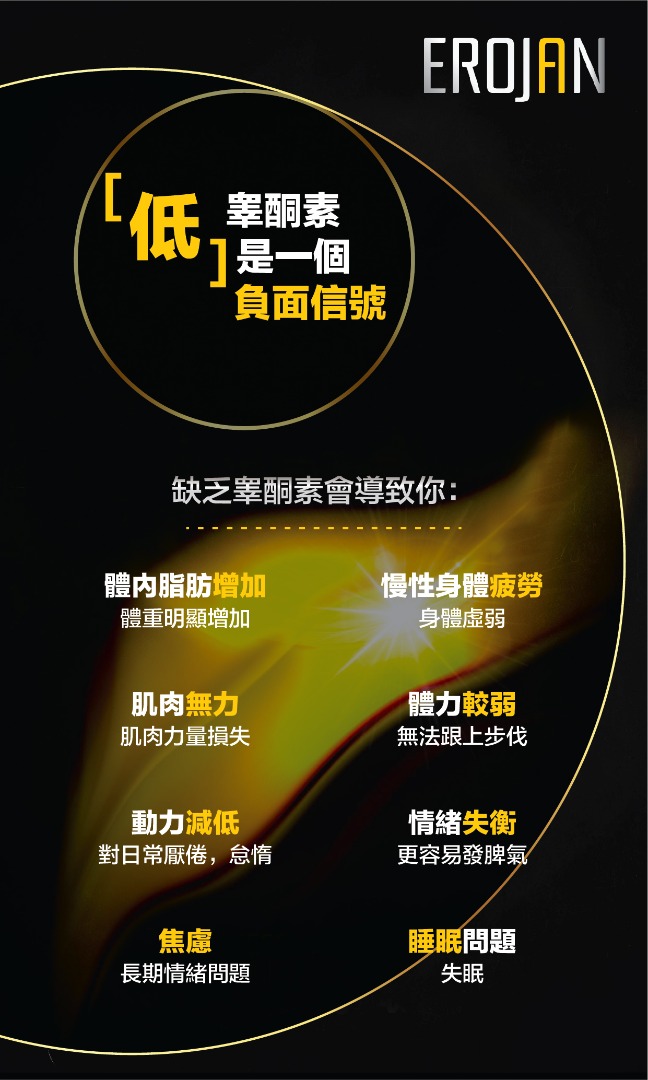 EROJAN是針對男性增加睾酮素水平而研製的保健品,讓你可以釋放潛在的健康活力維持最佳體力.EROJAN除了可以提高和增加身體活力也可以加強骨骼密度,支援整體男性氣概。 EROIAN 可以幫助調節睾酮索水平和脂肪分佈好讓你可以輕鬆跟上日常生活的步伐。 EROIAN 主要6種成分是東革阿里,蒺藜,淫羊蕾,瑪卡,紅野葛根和菟絲。