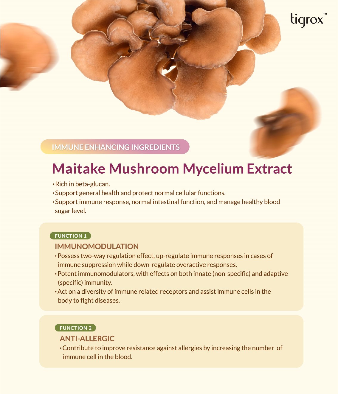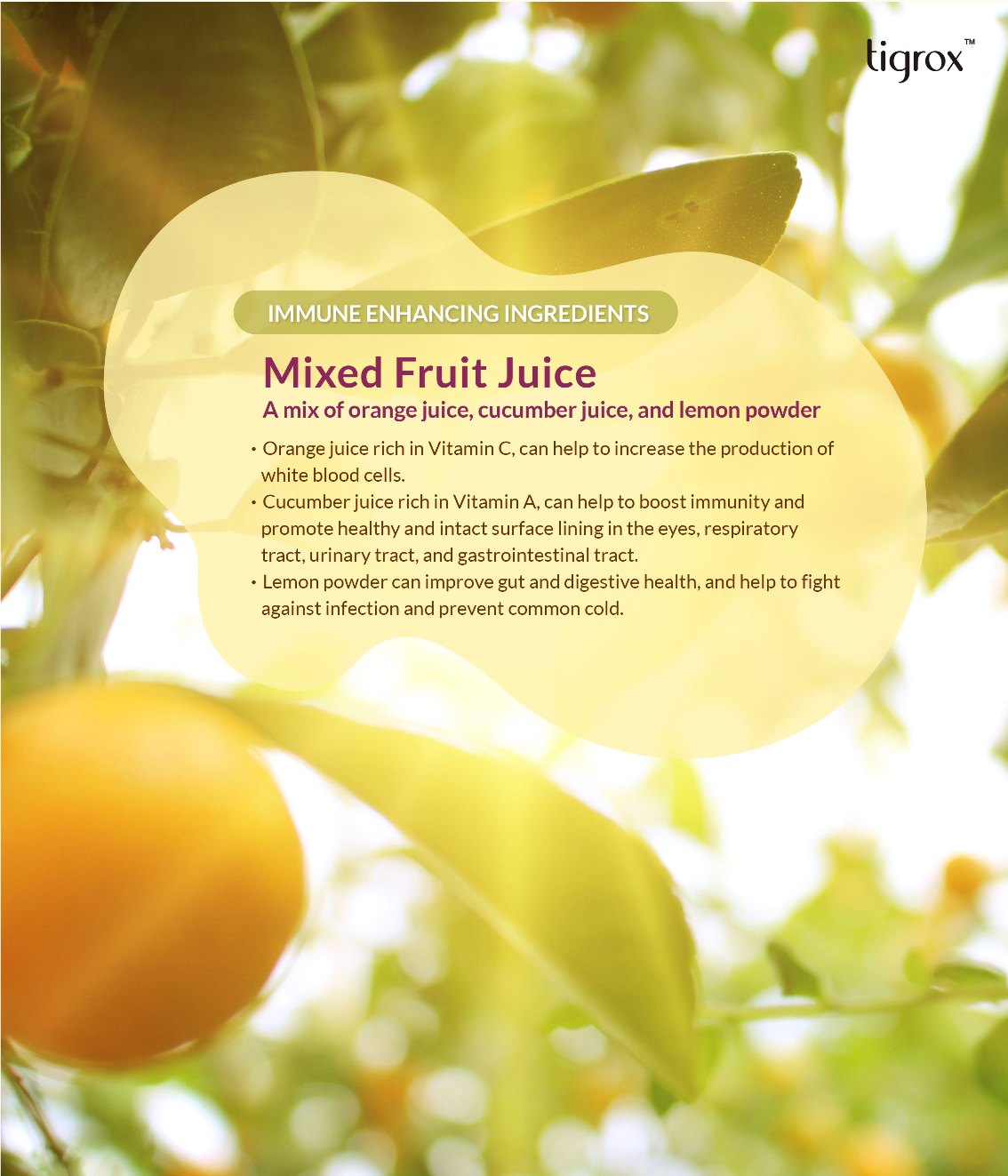 Vitamin C help to boost the functions of immune system, it can be quickly absorbed and processes higher rate of retention by body cells. Maitake Mushroom MYCELIUM is rich in beta-glucan and help to maintain regular cellular functions, immune response and gut's health. Mixed fruit juice is rich in vitamin And C, htlp to enhance immunity reduce flu, improve digestion and more.