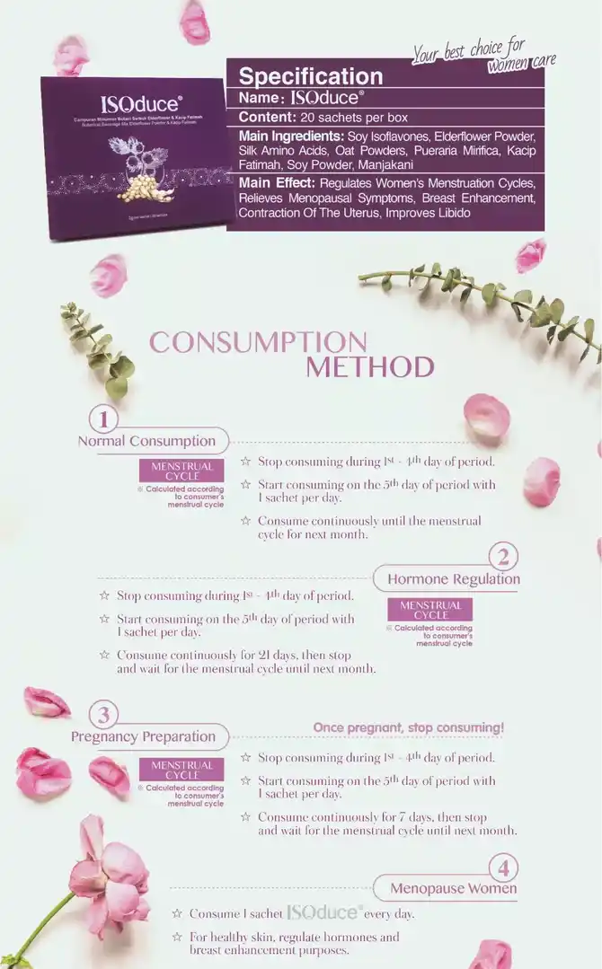Elderflower Powder, Soy Powder, Oat Powder, Silk Amino Acid, Soy Isoflavones, Kacip Fatimah, Pueraria Mirifica Extract, Manjakani Powder, Maltodextrin, Dextrose, Xylitol