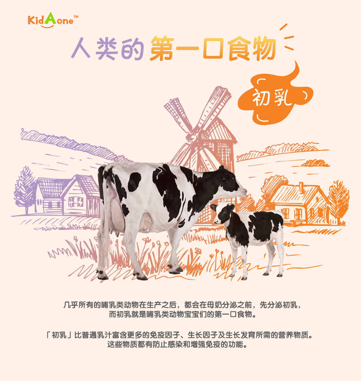 牛初乳 (ColostrumOne ™) 来自美国 A级乳制农场。 初乳是宝宝们的第一口食物,因为初乳含有丰富的营养物质, 有利与宝宝们的成长和发育。 所有的牛初乳的营养提炼过程全在符合国际卫生标准如动态药品生产管理规范(cGMP)与食品安全体系认证(FSSC)等的严格下进行。 牛初乳也可以提高儿童免疫系统以及呼吸系统, 增加儿童的消化能力。