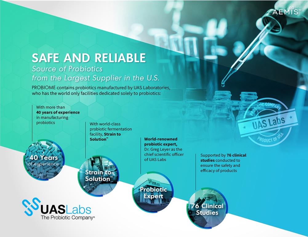 PROBIOME contains 7 types of Lactobacillus, 3 types of Bifidobacterium dan Streptococcus. Probiotic helps to maintain the pH of digestive system and encourage growth of other beneficial bacteria in the gut. It also able to promote gut health with good microbes and protect gut cells at the same time synthesis essential vitamins in the gut